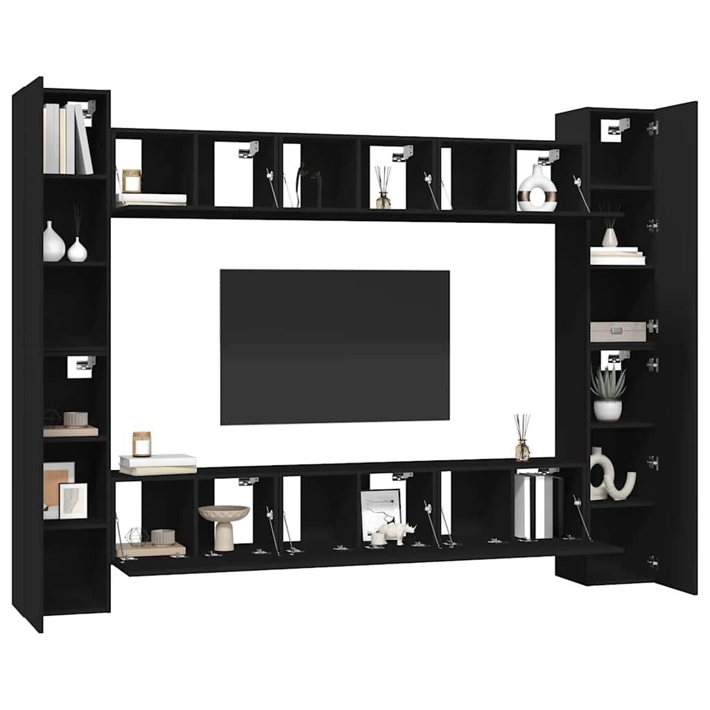 Set di Mobili Porta TV 10 pz Nero in Legno Multistrato 3078757