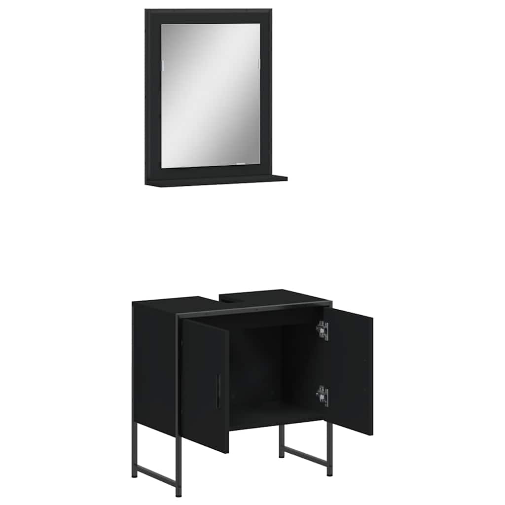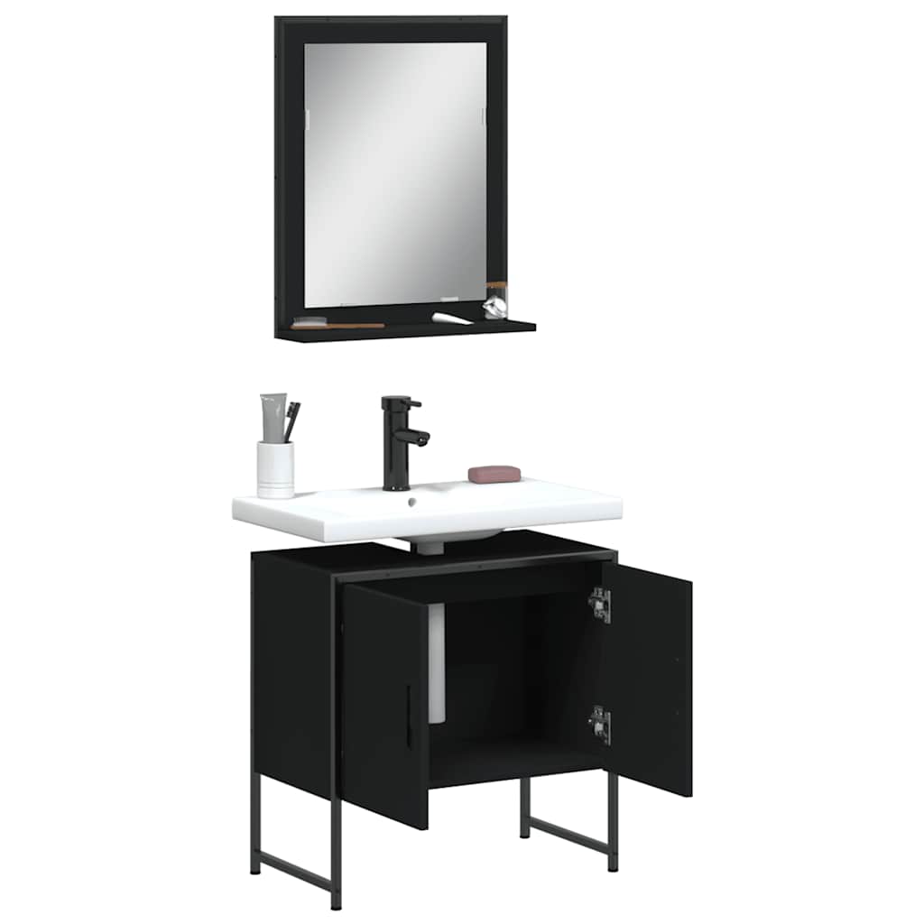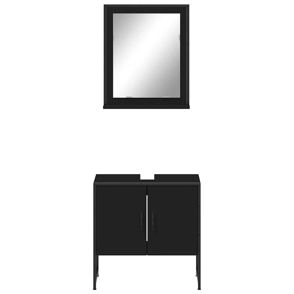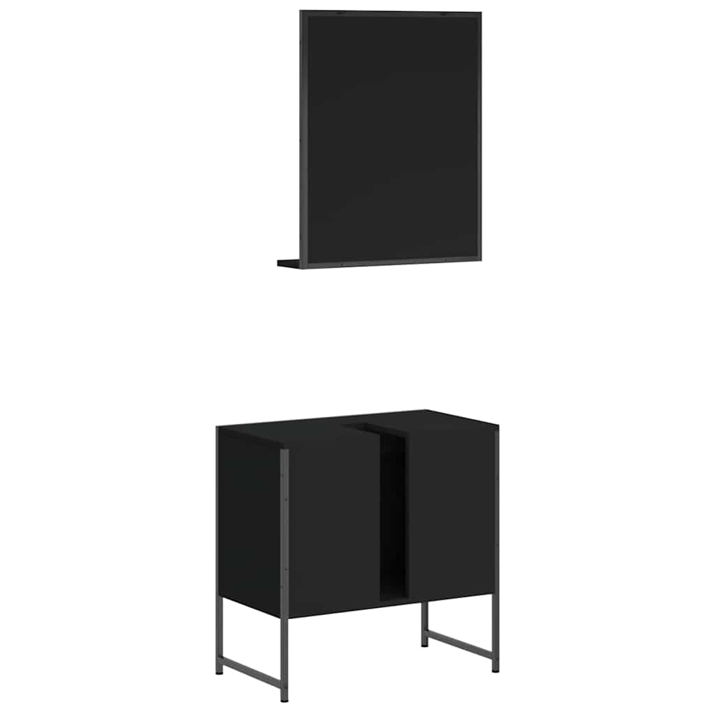 Set Mobili da Bagno 2 pz Nero in Legno Multistrato 3214334