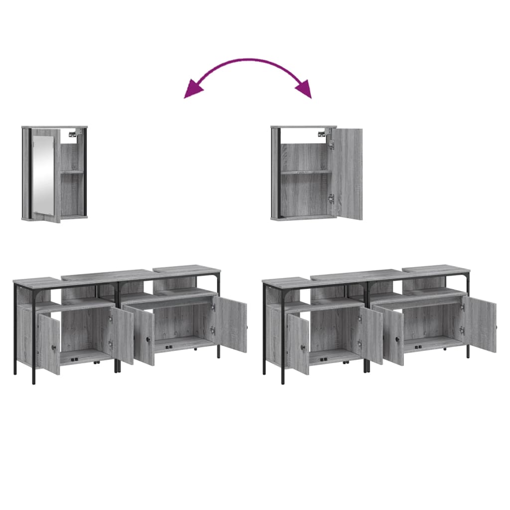 Set Mobili da Bagno 3 pz Grigio Sonoma in Legno Multistrato 3214788