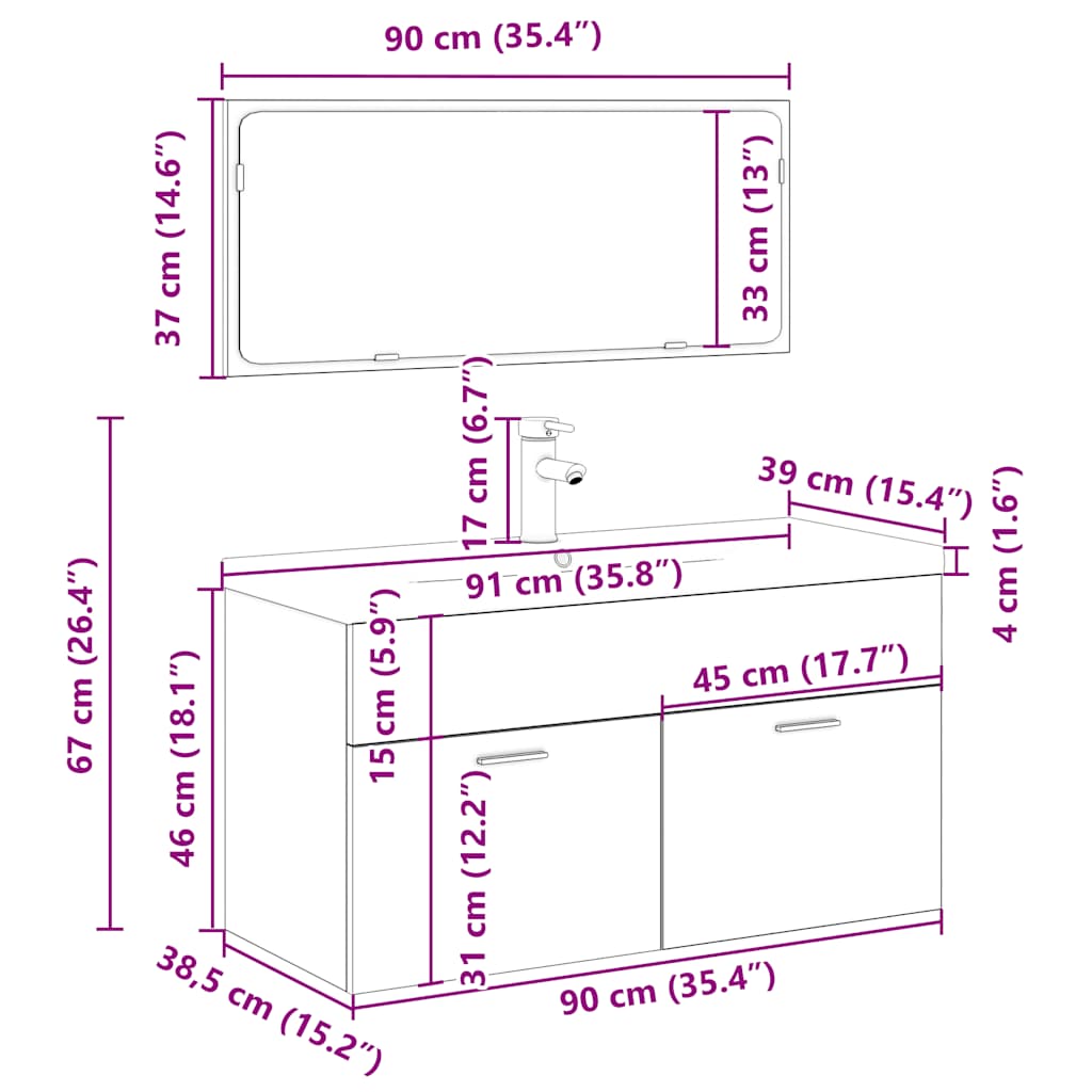 - Dimensioni lavabo: 91 x 39 x 18 cm (L x L x A)