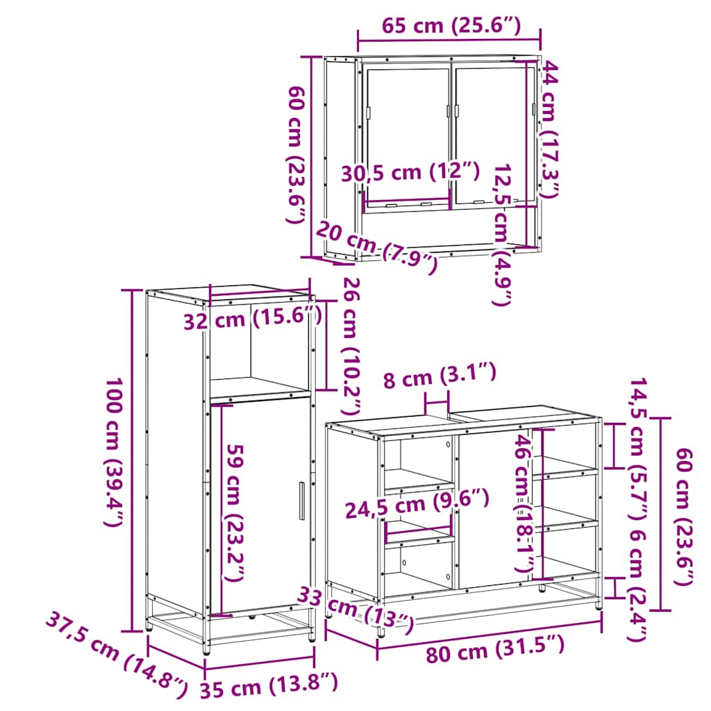 Set Mobili da Bagno 3 pz Rovere Marrone in Legno Multistrato 3301004