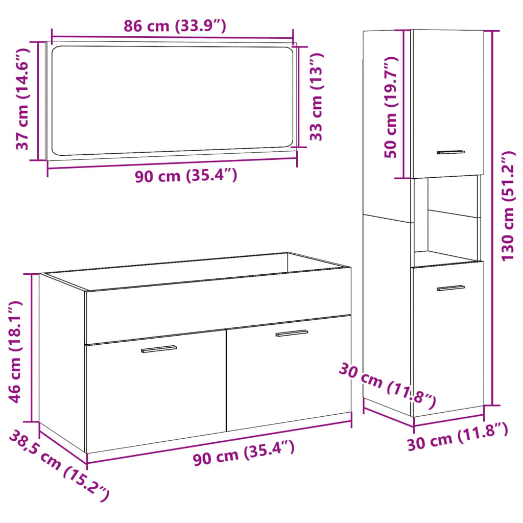 Set Mobili da Bagno 3 pz Rovere Sonoma in Legno Multistrato 3324994