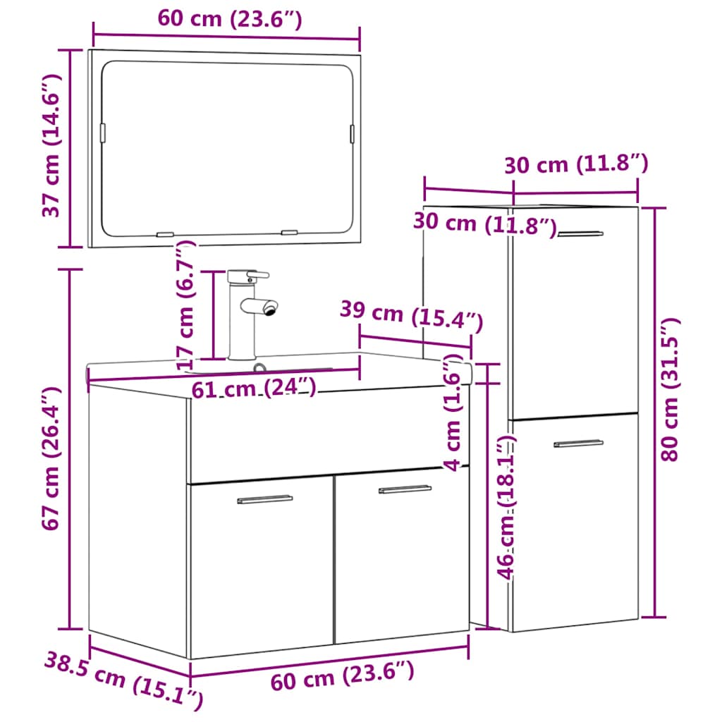 - Dimensioni del mobile lavabo del bagno: 60 x 38,5 x 46 cm (L x P x A)