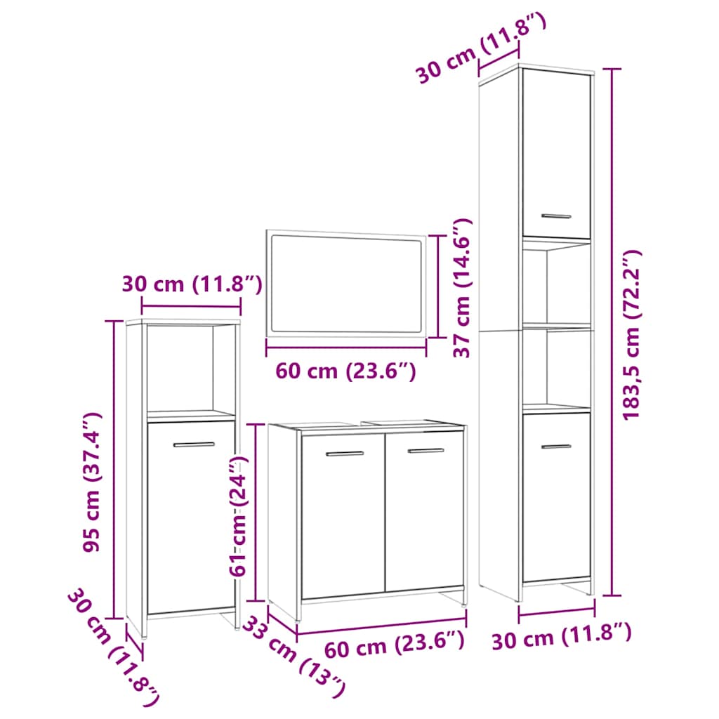 Set Mobili da Bagno 4 pz Rovere Marrone in Legno Multistrato 3154405