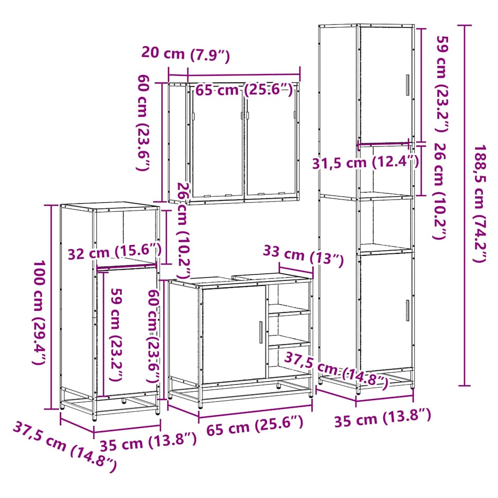Set Mobili da Bagno 4 pz Rovere Sonoma in Legno Multistrato 3301206