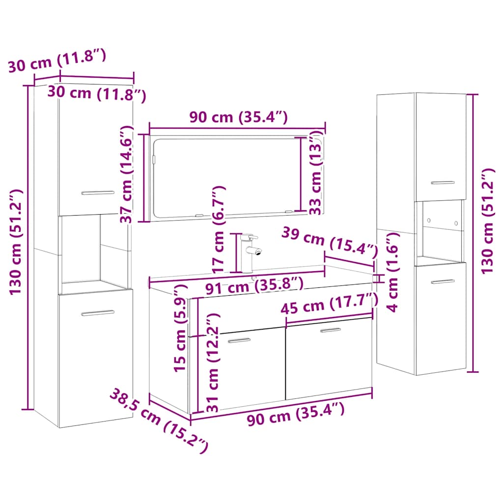 Set Mobili da Bagno 5 pz Legno Antico in Legno Multistrato 3328919