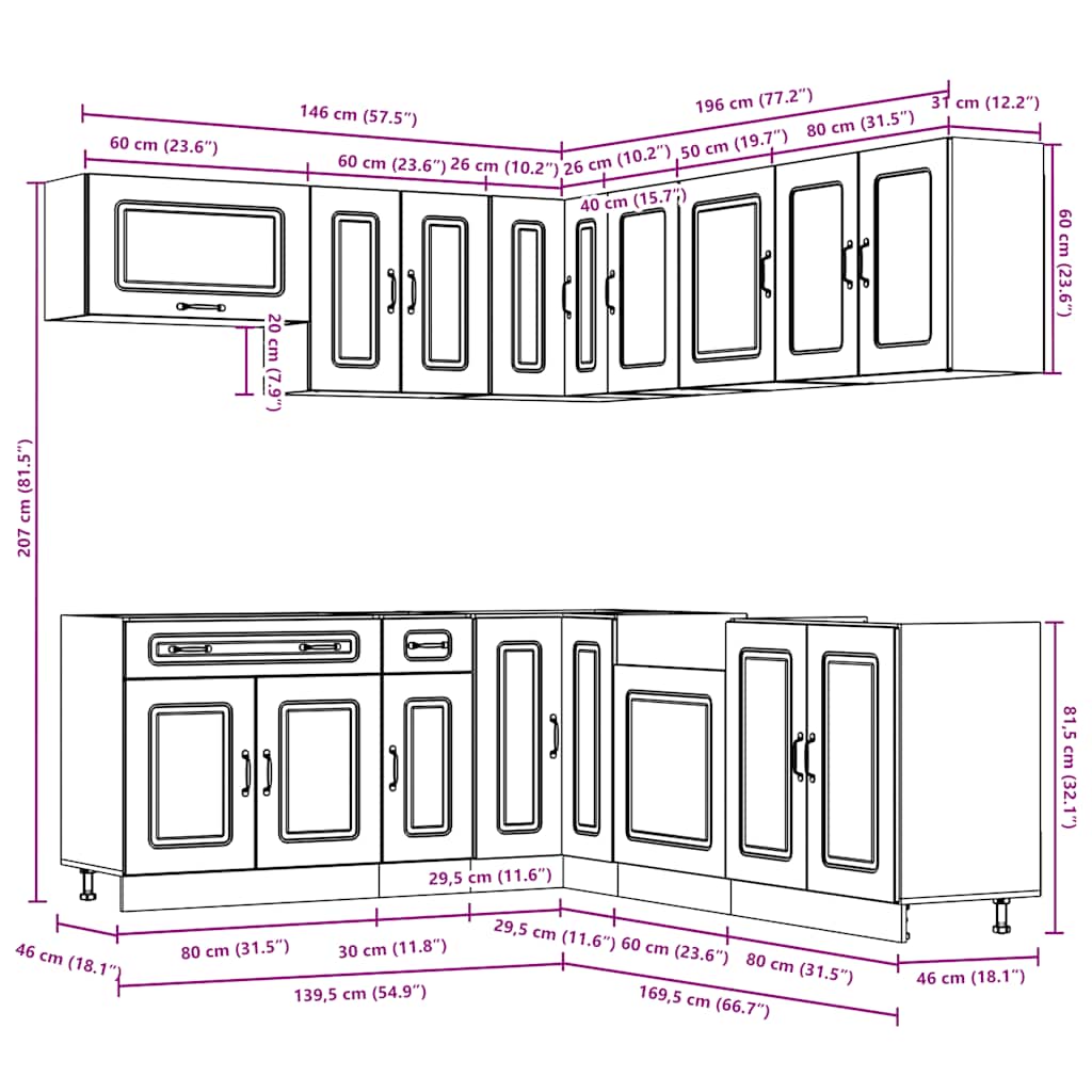 Set Mobili da Cucina 11 pz Kalmar Rovere Fumo Legno Multistrato 3314916