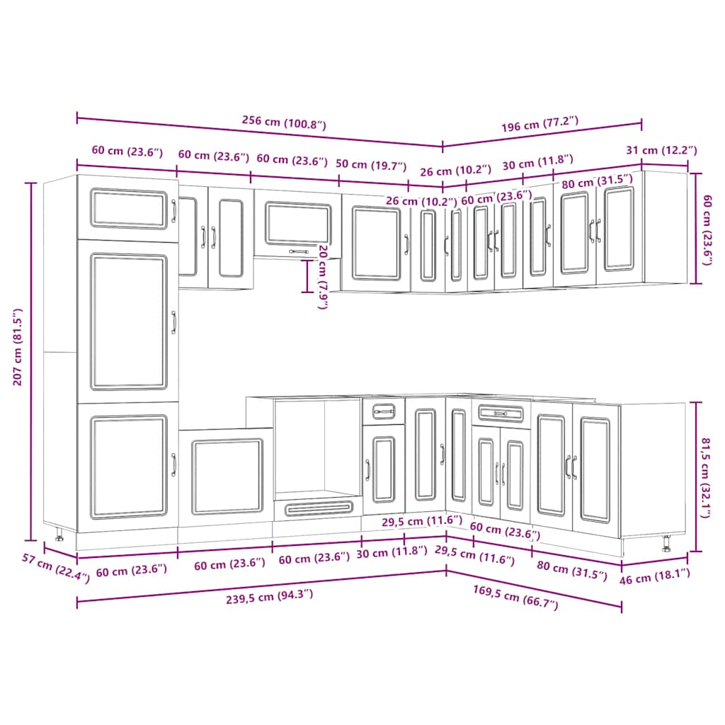 Set Mobili da Cucina 14 pz Kalmar Grigio Cemento in Truciolato 3314975