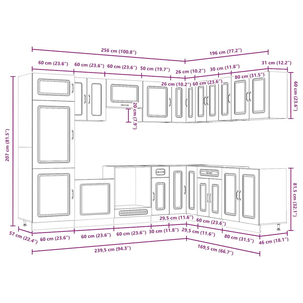 - 1 Pensile ad angolo della cucina: 57 x 57 x 60 cm (L x P x A)