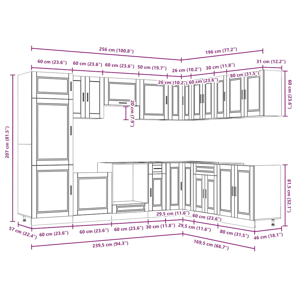 Set Mobili da Cucina 14 pz Porto Rovere Fumo in Truciolato 3314996
