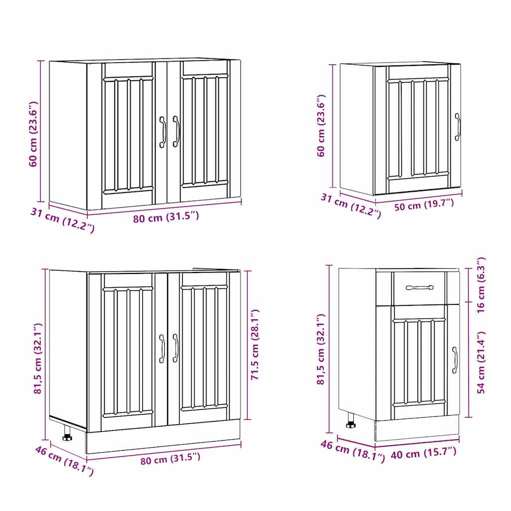 Set Mobili da Cucina 7 pz Lucca Legno Vecchio in Truciolato 3314779