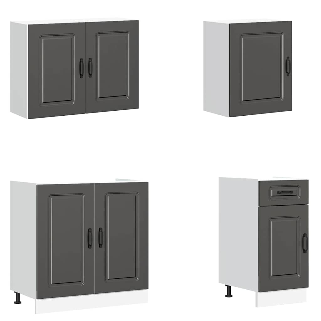 Set Mobili da Cucina 7 pz Kalmar Neri Legno Multistrato 3314762