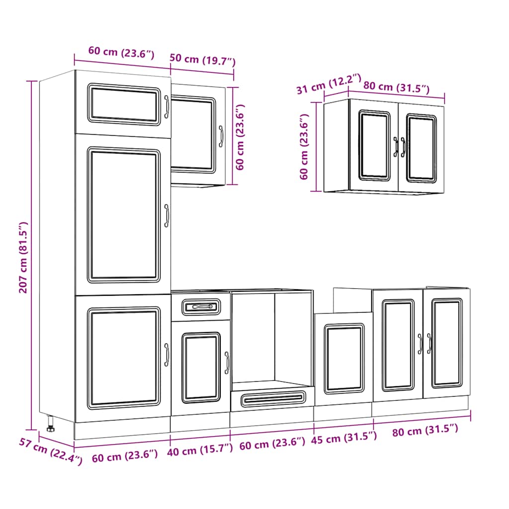 - 1 Armadio da cucina: 60 x 57 x 207 cm (L x P x A)