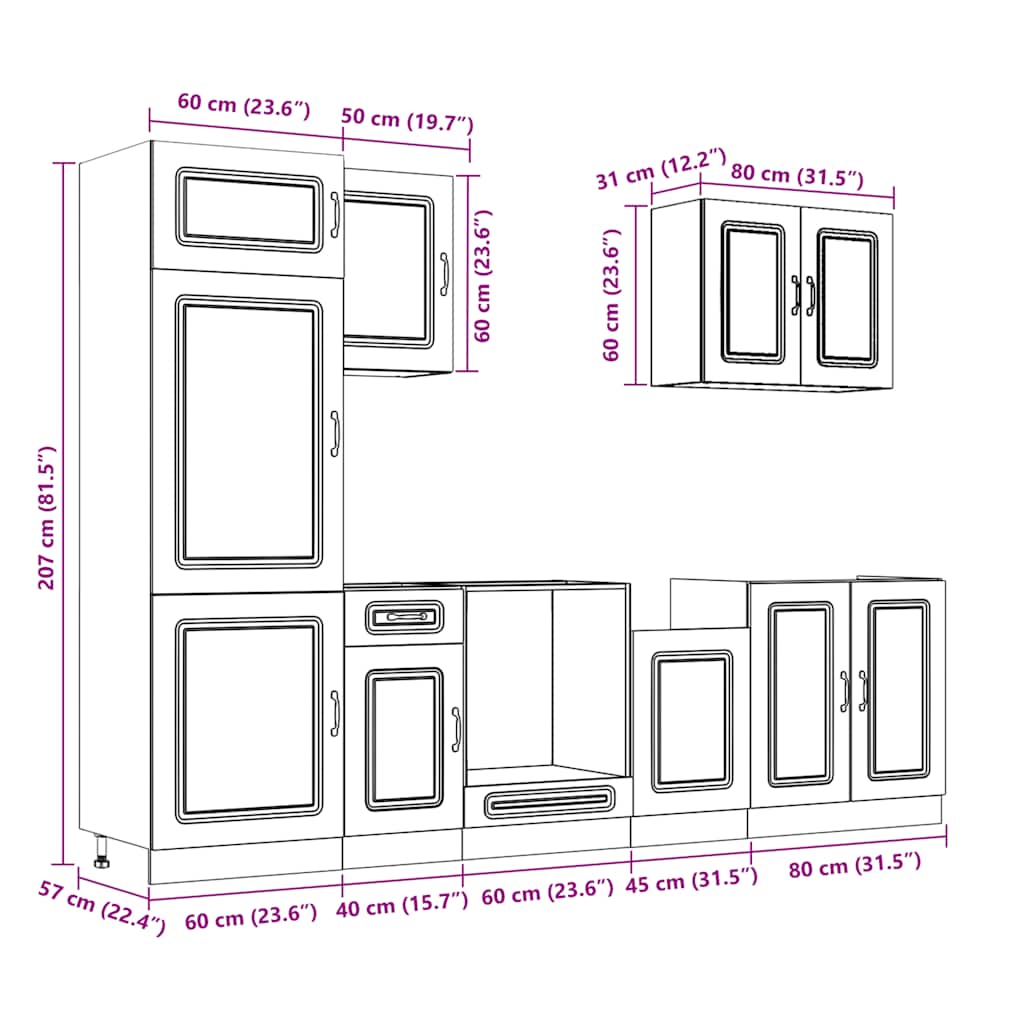 Set Mobili da Cucina 7 pz Kalmar Rovere Fumo Legno Multistrato 3314766
