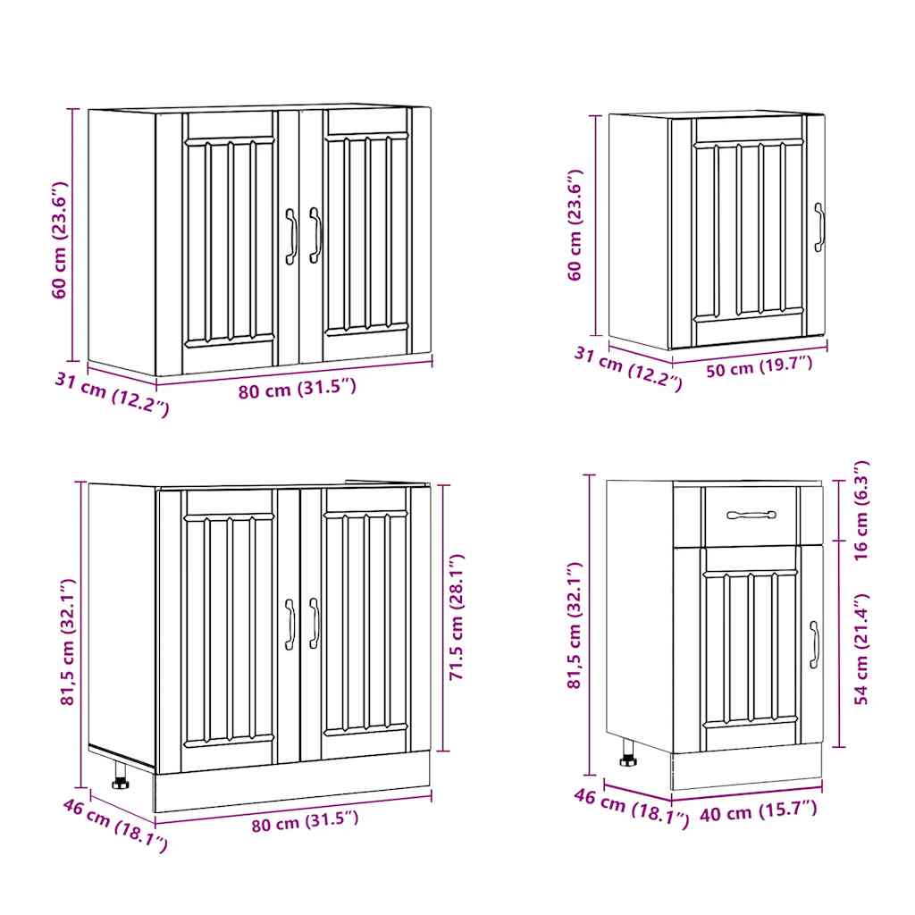 Set Mobili da Cucina 7 pz Lucca Rovere Fumo Legno Multistrato 3314776