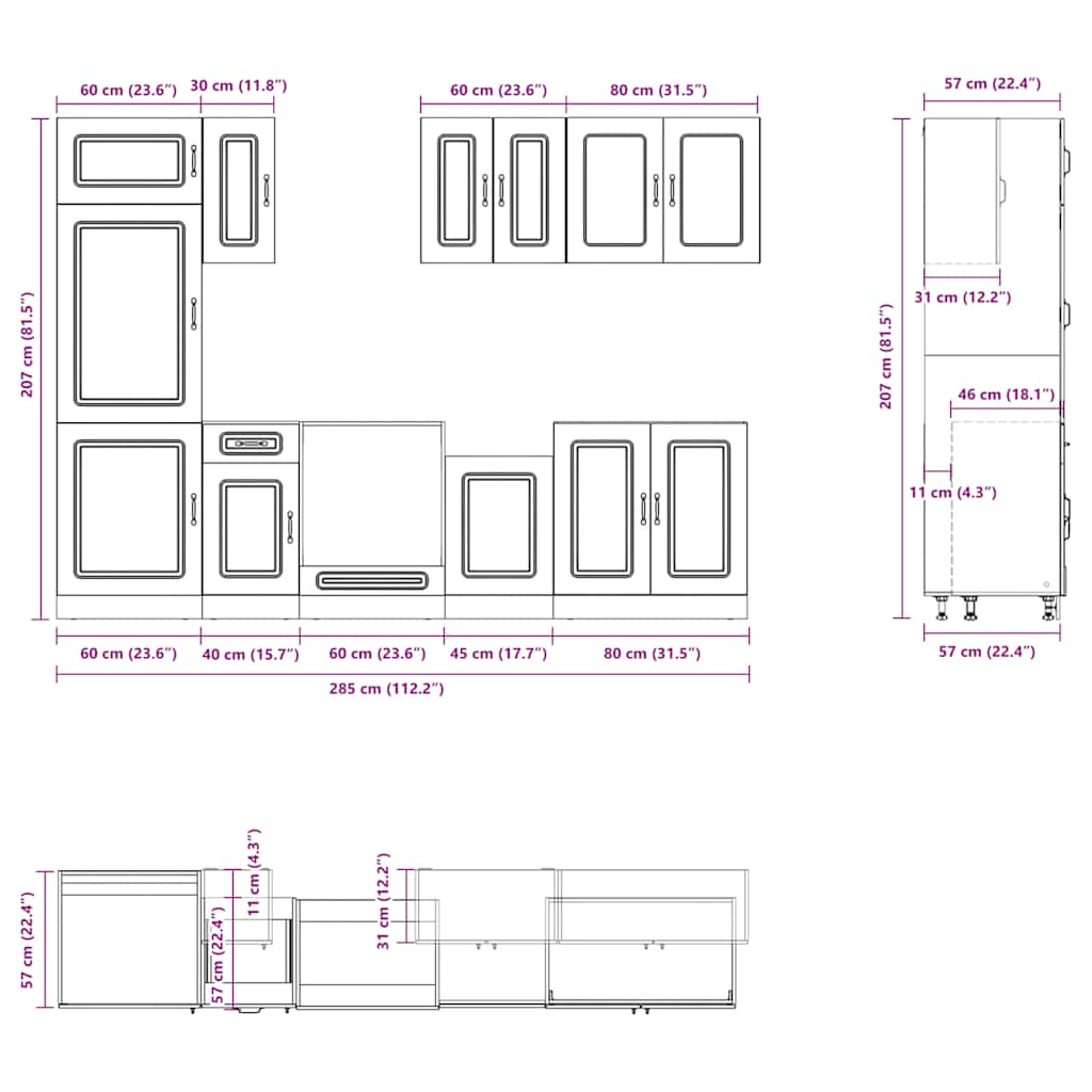 - 1 Armadio inferiore per forno: 60 x 46 x 81,5 cm (L x P x A)