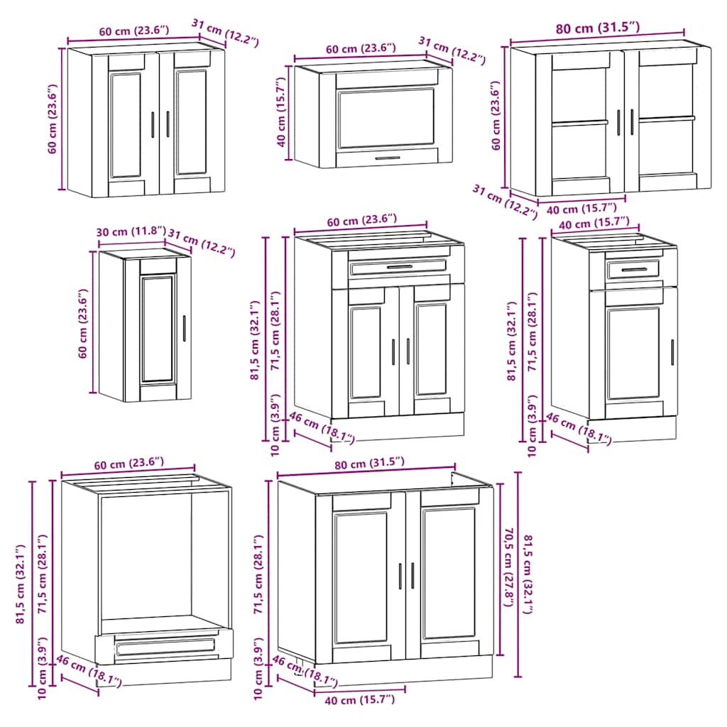 - 1 x Mobile base per lavello: 80 x 46 x 81,5 cm (L x P x A)