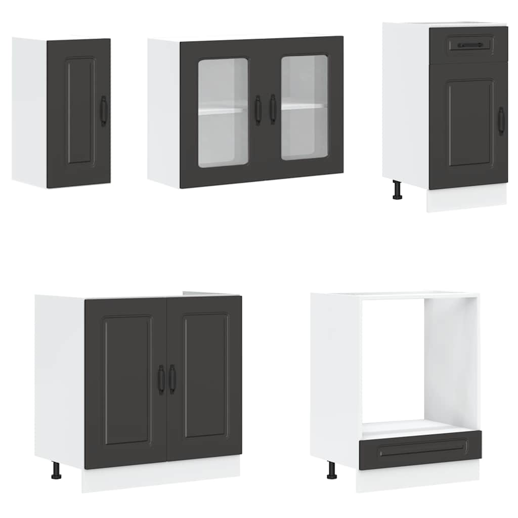 Set Mobili da Cucina 8 pz Kalmar Neri Legno Multistrato 3314792