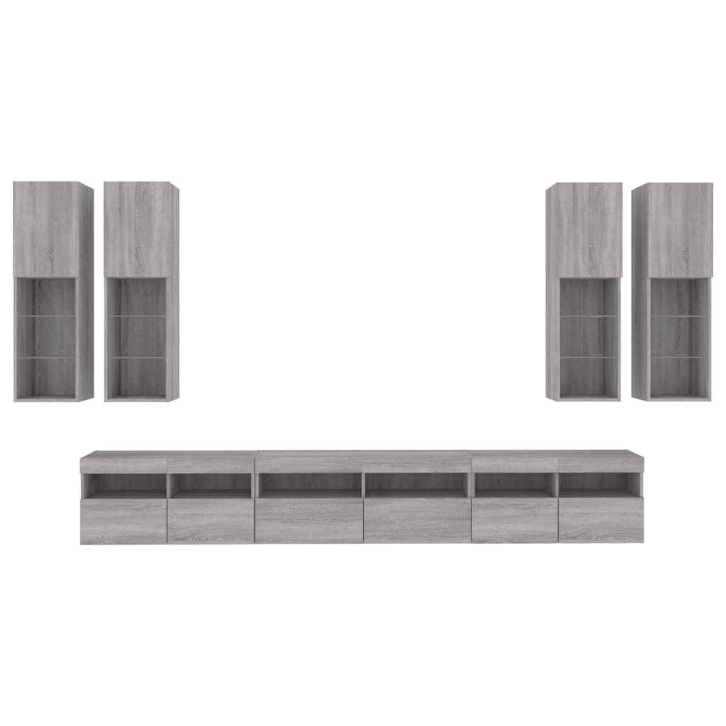Set Mobili TV a Muro 7 pz con Luci LED Grigio Sonoma 3216783