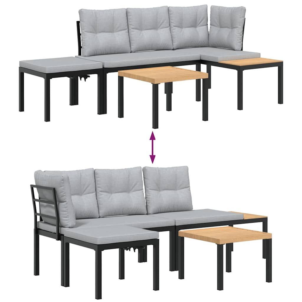 Set Panche Giardino Cuscini 4pz Nero Acciaio Verniciato Polvere 3283640
