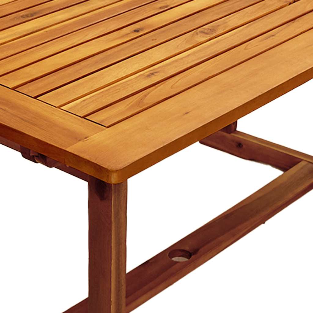- Legno massello di acacia: Il set da pranzo da esterno è realizzato in legno massello di acacia. Il legno massello di acacia è un bellissimo materiale naturale. Il legno di acacia è un legno duro tropicale, che è denso, robusto e durevole.