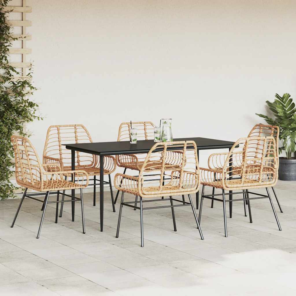 Set Pranzo da Giardino 7pz Marrone Polyrattan Vetro 3334447