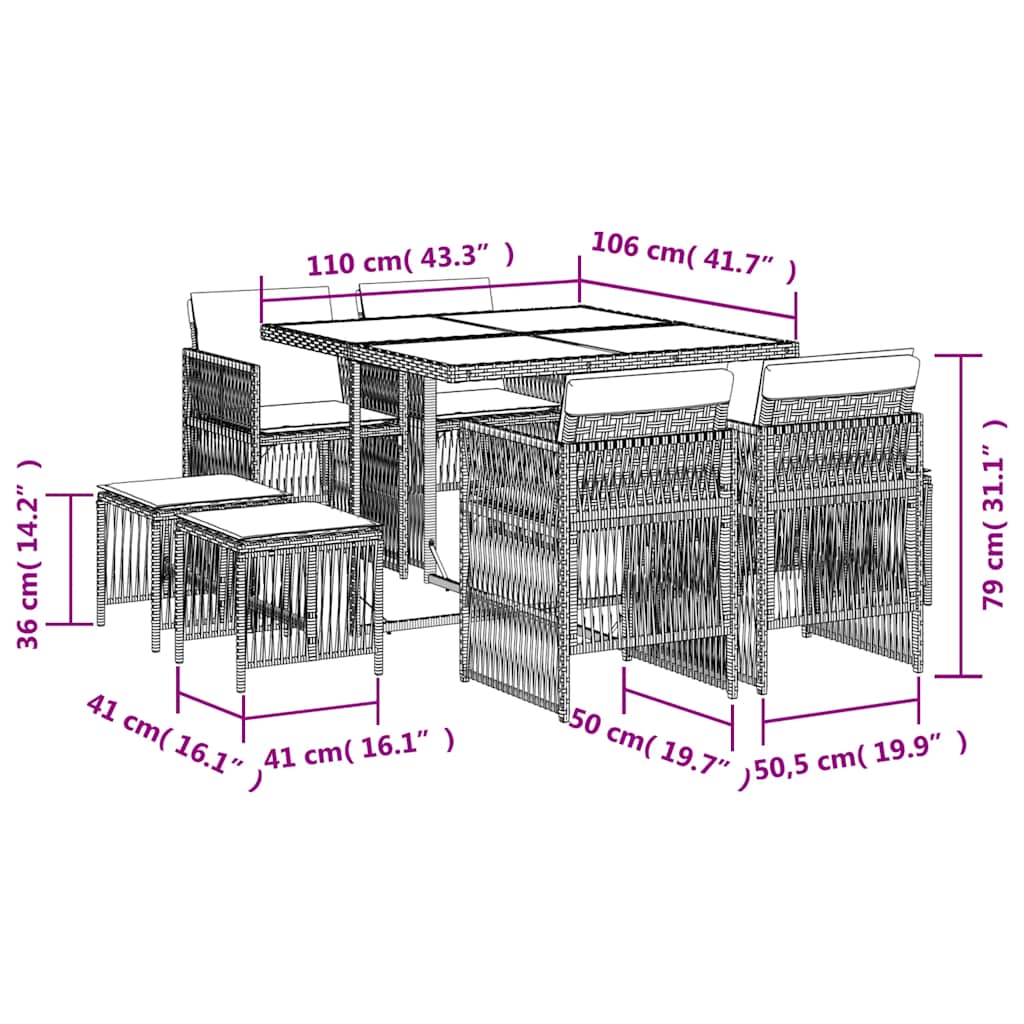 Set Pranzo da Giardino 9pz con Cuscini Grigio Chiaro Polyrattan 3210959