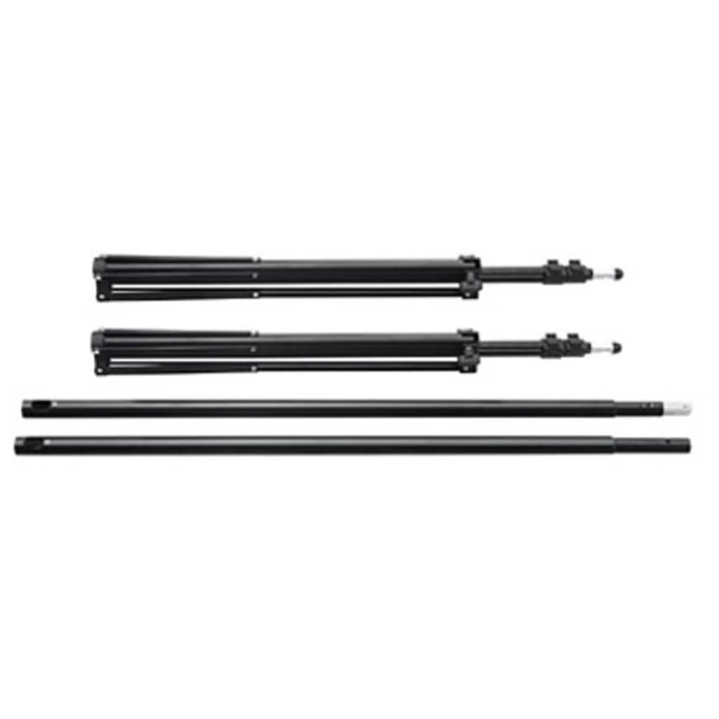 Il sistema di fondo leggero è veloce e facile da assemblare ed è realizzato in alluminio. Il sistema verrà consegnato con uno schermo bianco in cotone, ma può anche essere utilizzato in combinazione con diversi materiali dello schermo e/o rotoli di carta. Il sistema di sfondo ha una larghezza massima di 300 cm. Non è un problema se si desidera utilizzare il sistema sul posto. È facilmente assemblabile e smontabile e inoltre comodo da trasportare nella borsa da trasporto inclusa di ca. 85 x 15 x 15 cm.