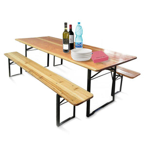Il set birreria comprende un tavolo e due panche richiudibili, adatto a strutture commerciali, giardini privati, campeggio e saghe. Salvaspazio: sia le panchine che il tavolo sono facilmente richiudibili, comodo per salvare dello spazio in periodi di inutilizzo o per essere trasportato durante viaggi. Struttura resistente e adatta a durare nel tempo, anche in ambienti esterni. Pratico: set dall'immediata e facile pulizia. Misure tavolo 220 x 76 x 80 cm, Misure panca 220 x 46 x 24 cm