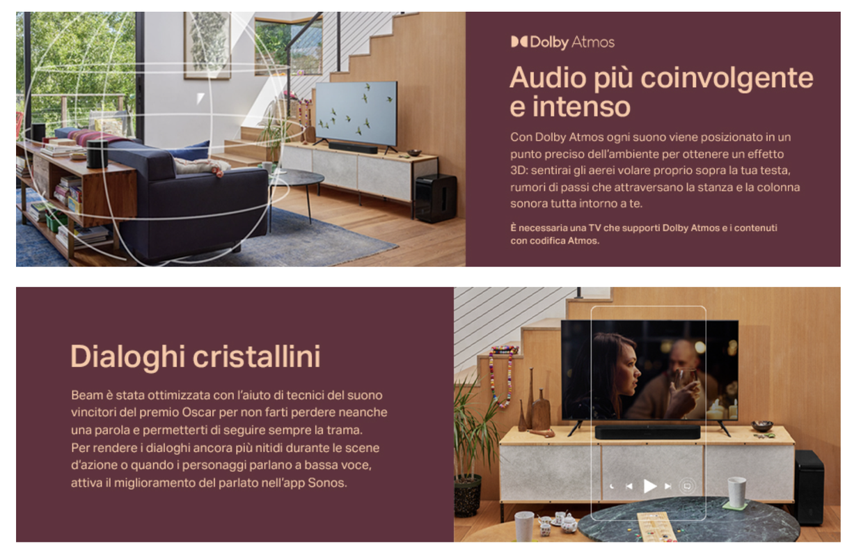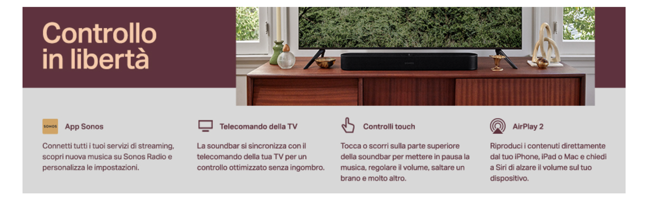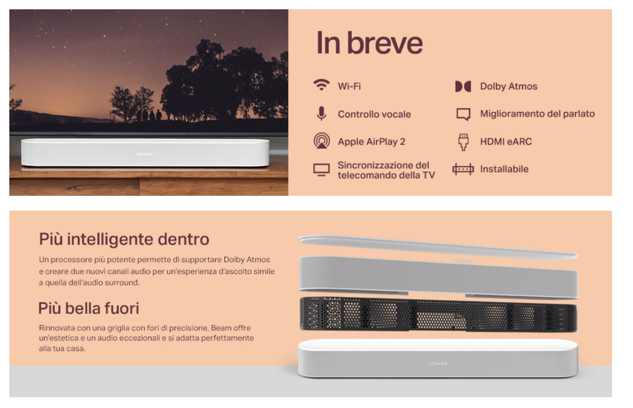 Sonos Beam Gen2, soundbar TV e musica, Multiroom Wi-Fi, Imput HDMI eARC, Dolby Atmos, AirPlay2, Google Assistenza e Amazon Alexa - Nero
