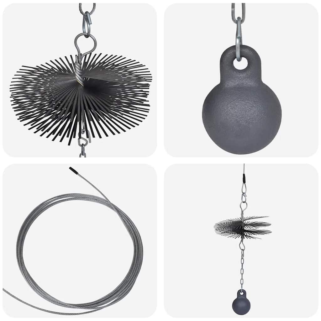 La consegna include: 1 x spazzola per la canna fumaria, 1 x sfera con catena, 1 x filo.