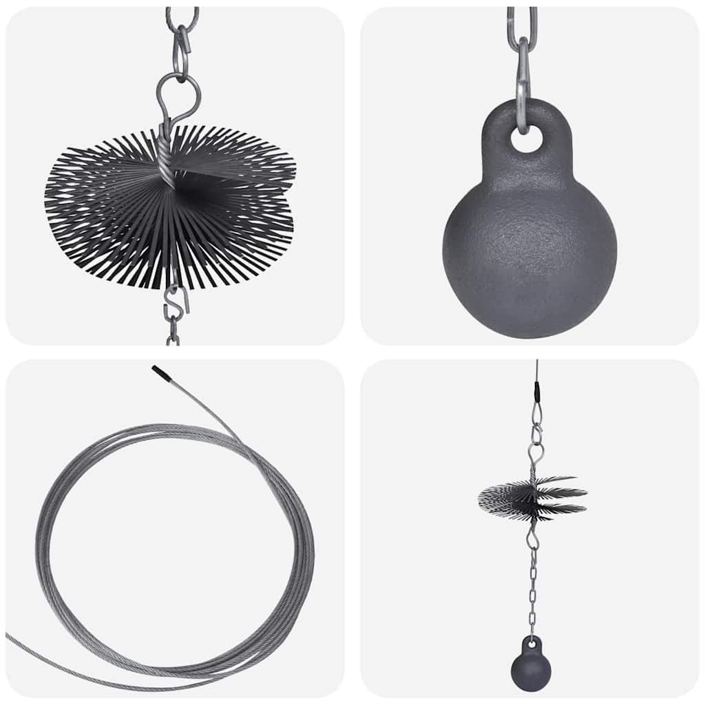 La consegna include: 1 x spazzola per la canna fumaria, 1 x sfera con catena, 1 x filo.