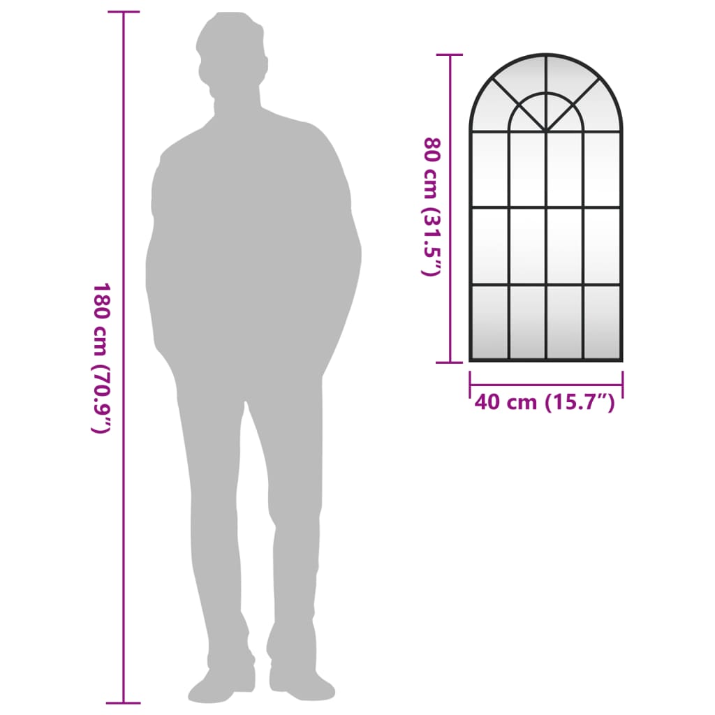 Specchio da Parete Nero 40x80 cm Arco in Ferro 358625