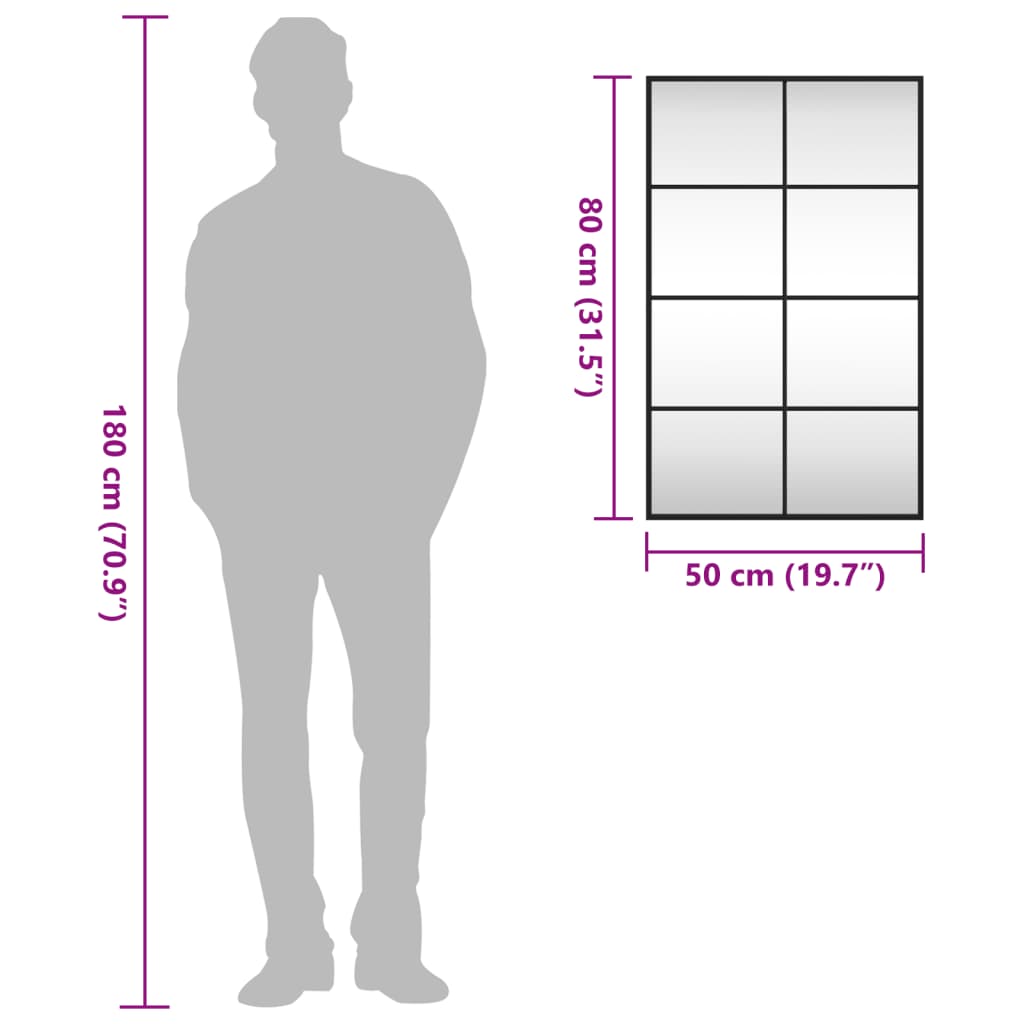 Specchio da Parete Nero 50x80 cm Rettangolare in Ferro 358648