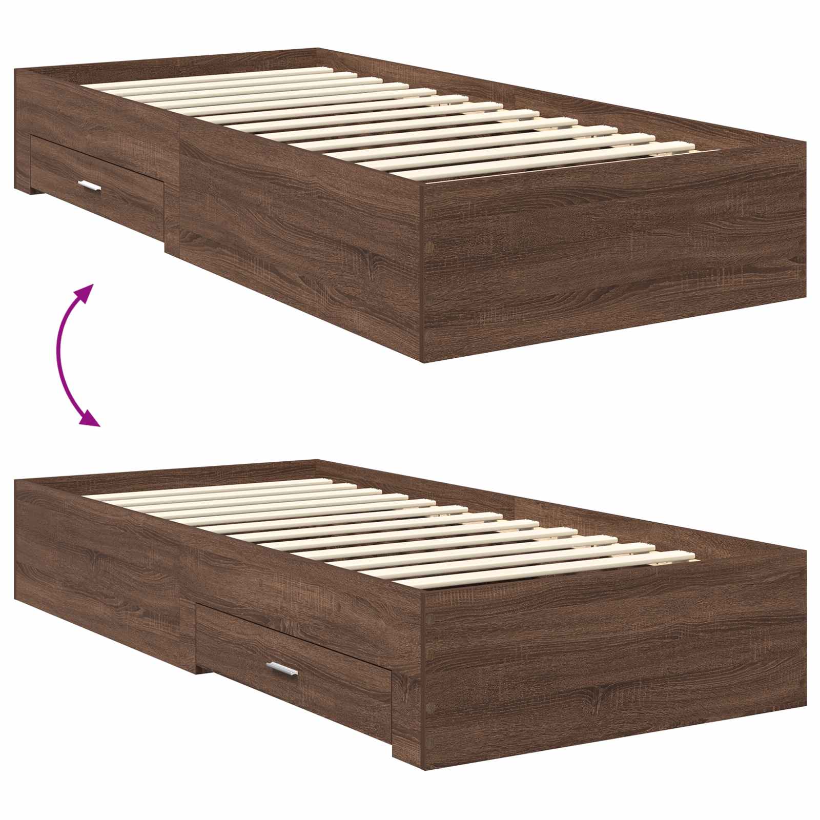 Struttura del letto Rovere Marrone e Argento 90 x 190 cm 3410955