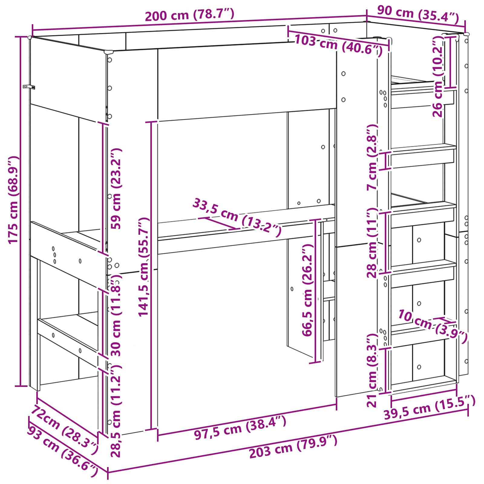 - Design pratico: Include listelli per il supporto del materasso e una sponda di sicurezza che assicura un sonno tranquillo. Il suo stile moderno si integra facilmente negli spazi con decorazioni simili. La scala è facile da usare e rende sicuro l'accesso al letto superiore.