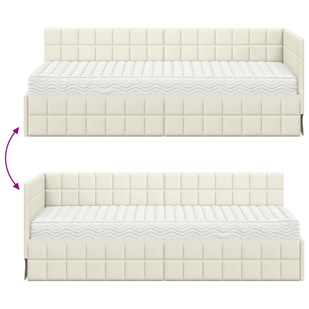 Struttura Letto Angolare con Materasso 2 pcs Crema Velluto 3393925