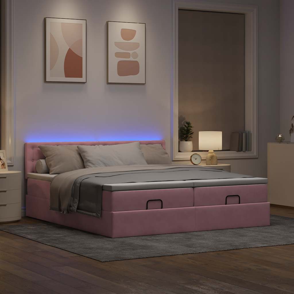 Struttura Letto Pouf con Materassi Rosa 180x200 cm Velluto 3312964