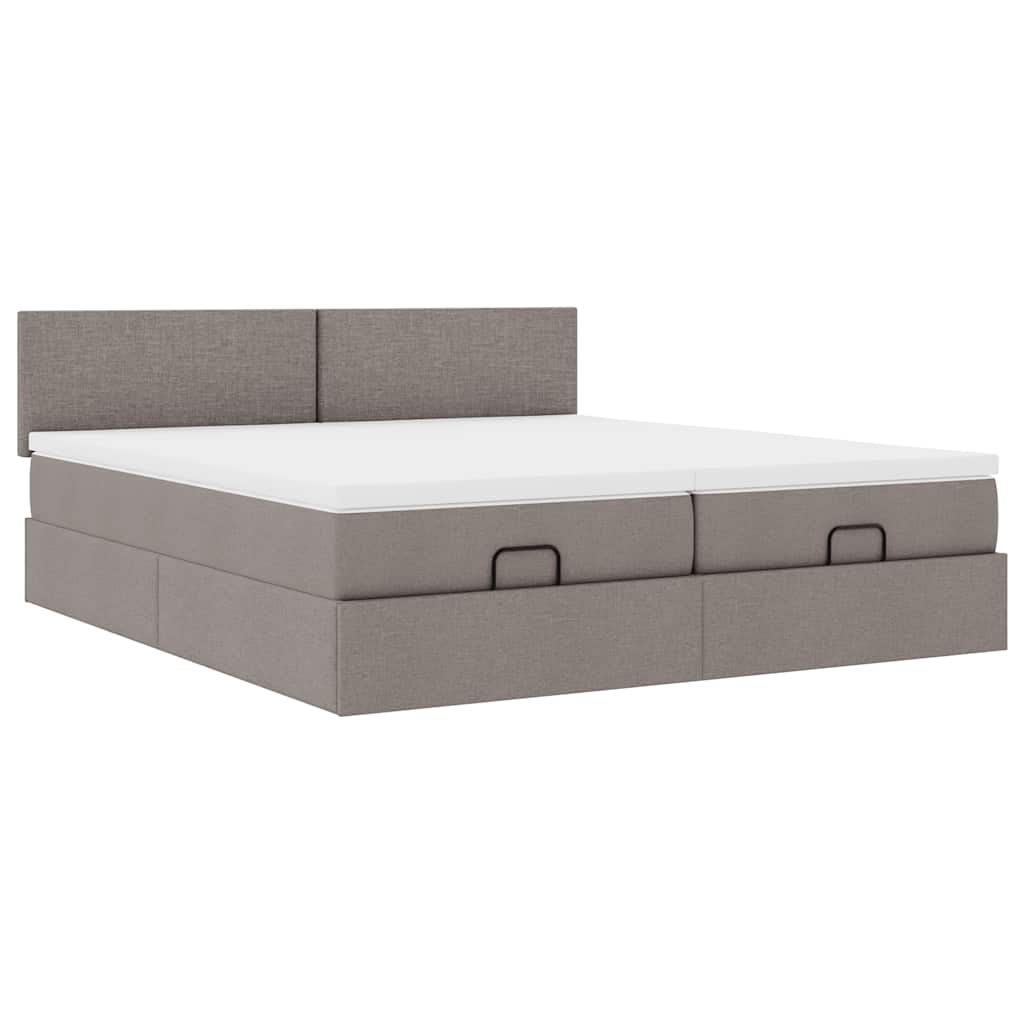 Struttura Letto Pouf con Materassi Tortora 200x200 cm Tessuto 3311984