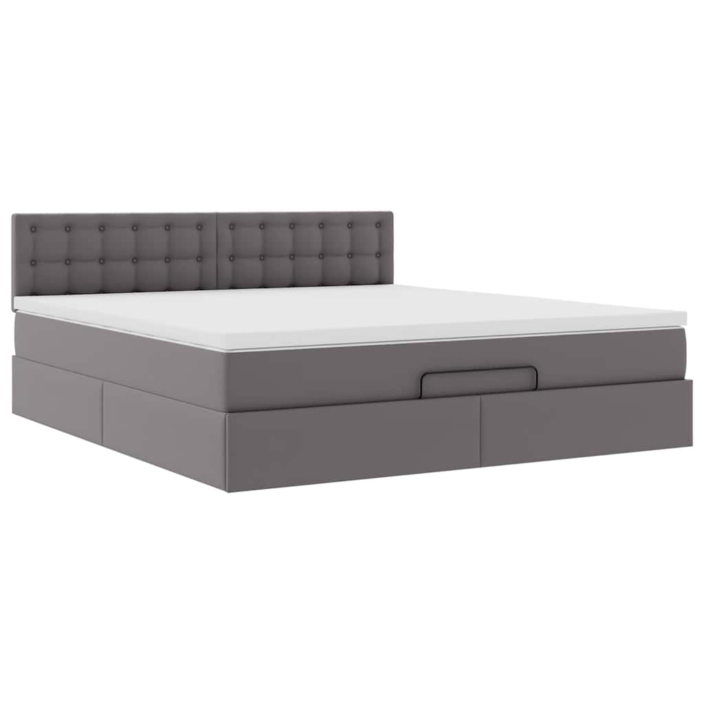 Struttura Letto Pouf con Materasso Grigio 180x200 cm Similpelle 3311321