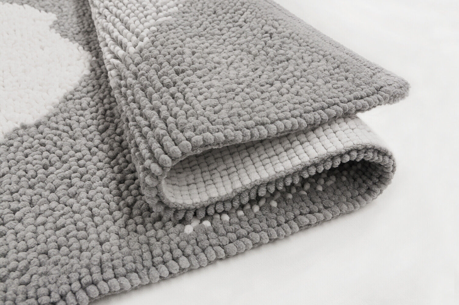 - Materiale: 100% ciniglia di puro cotone, Sottofondo in gocce di gomma antiscivolo.