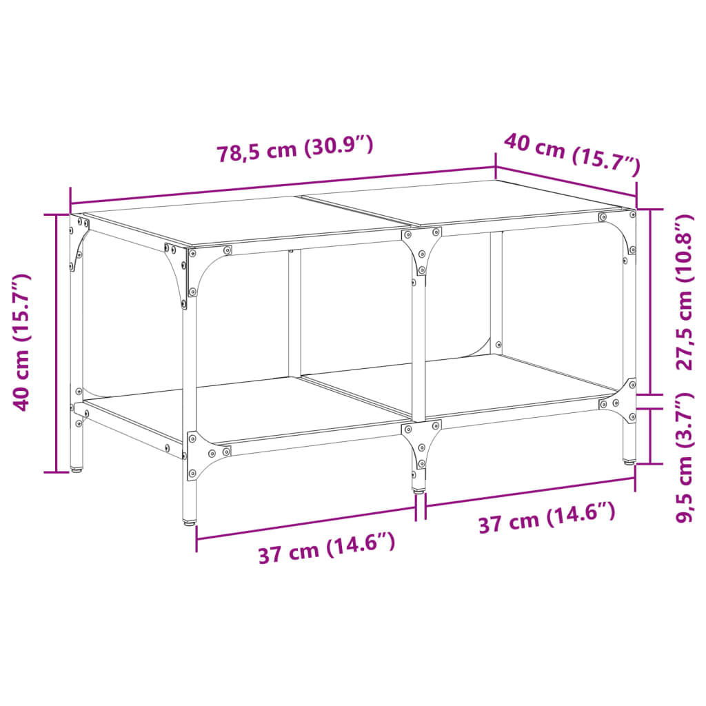 Tavolino con Piano in Vetro Nero 78,5x40x40 cm Acciaio 845977