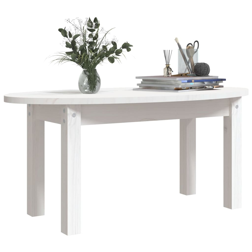 Tavolino da Salotto Bianco 80x40x35 cm Legno Massello di Pino 822348