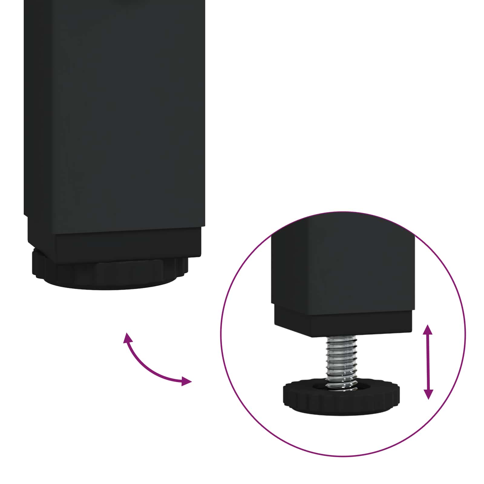 - Base robusta: Con un telaio in acciaio e piedini regolabili, il tavolo è stabile su qualsiasi superficie. I piedini sono utili su pavimenti irregolari, dando stabilità e funzionalità extra. Questa base robusta supporta l'uso quotidiano ed evidenzia l'eleganza rustica del tavolo.