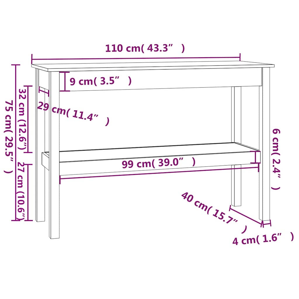 Tavolo Consolle Bianco 110x40x75 cm in Legno Massello di Pino 814300