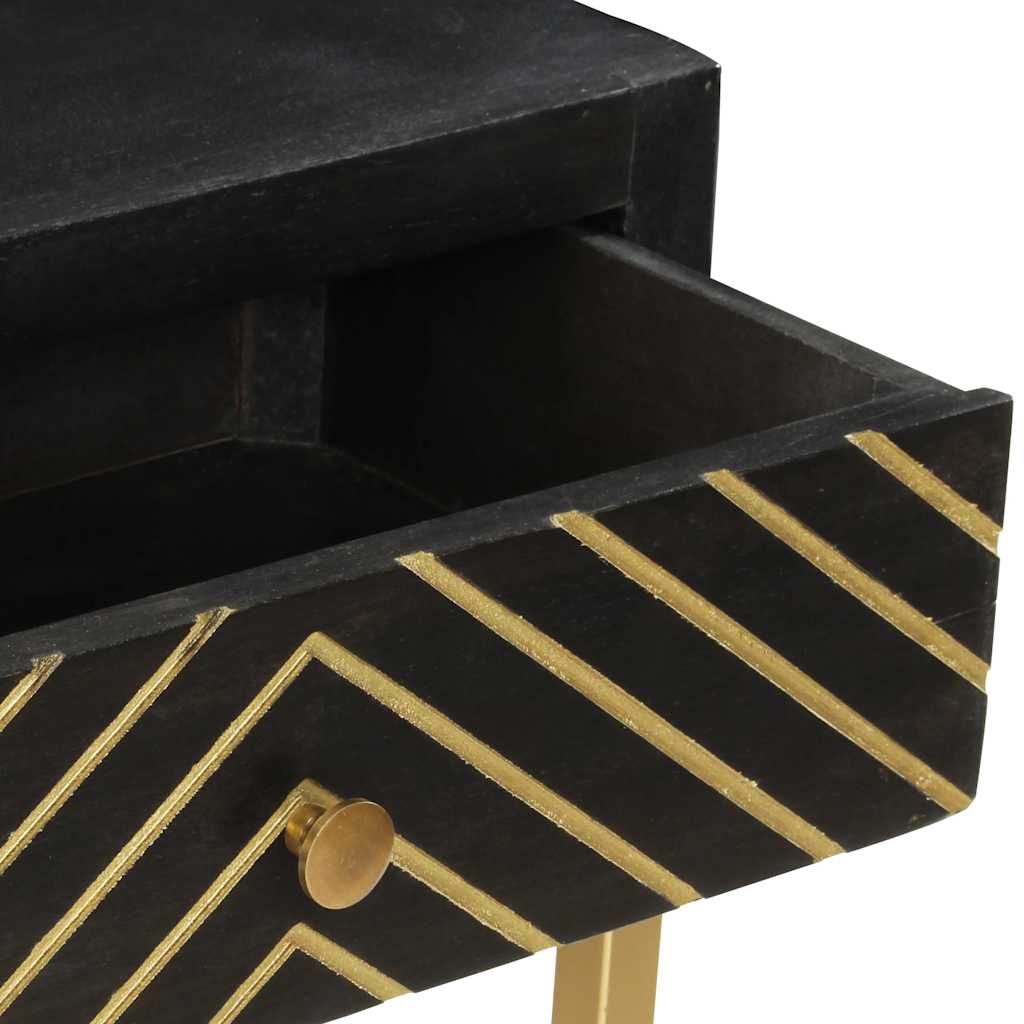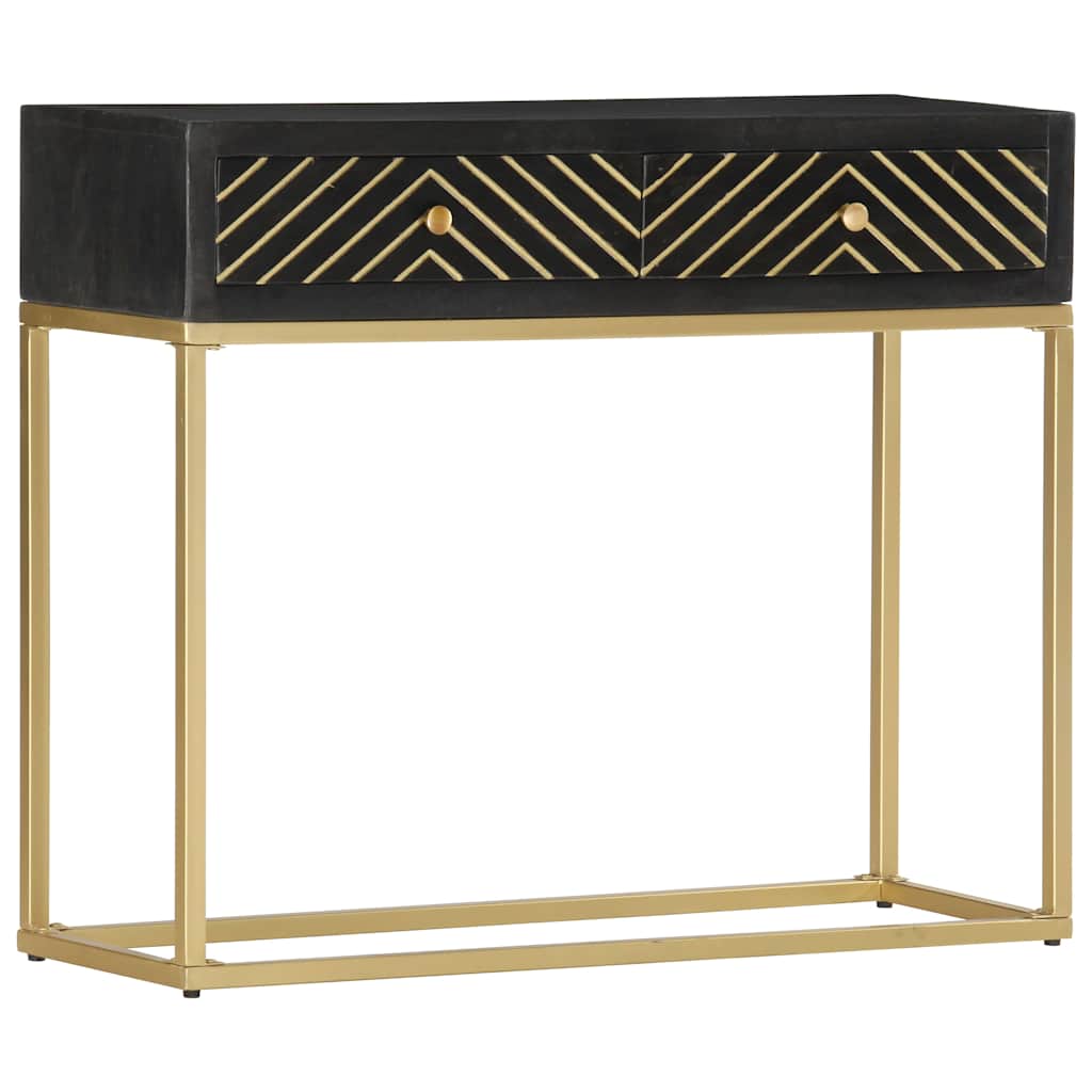 Tavolo Consolle Nero e Oro 90x30x75cm Legno Massello di Mango 286518