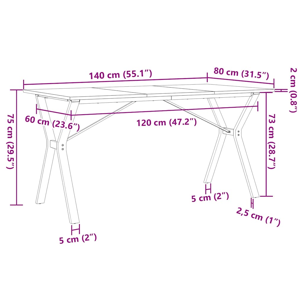 Tavolo da Pranzo Telaio a Y 140x80x75 cm Legno Pino e Acciaio 3282720