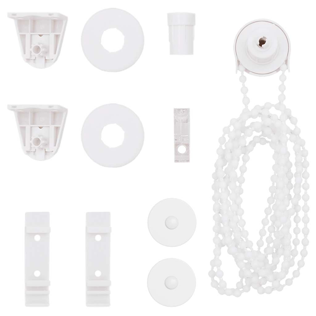 La consegna include 1 binario superiore in alluminio da 80 cm con tessuto zebrato da 77 x 150 cm, 1 binario superiore da 80 cm, 1 binario inferiore pesante da 80 cm, 2 ganci, 2 staffe, 1 supporto per catena, 2 guarnizioni e 1 catenella a sfere.
