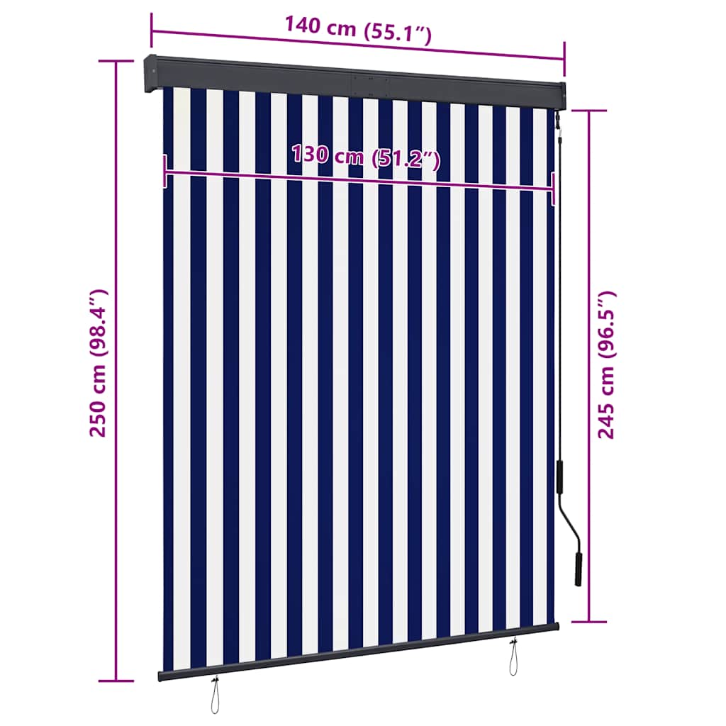 Tenda a Rullo per Esterni 140x250 cm Blu e Bianca 145967