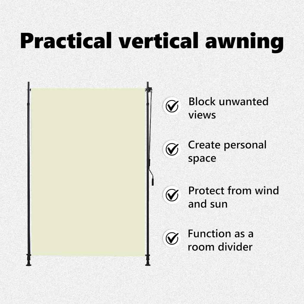 Realizzata in tessuto di qualità con rivestimento in PA, è resistente allo sbiadimento e può bloccare il sole consentendo al contempo il passaggio dell'aria. Può essere facilmente arrotolata su e giù con il sistema azionato a manovella. Questa tenda verticale è dotata di due montanti con altezza regolabile da 225 a 275 cm. Può adattarsi alla maggior parte dell'altezza del soffitto e garantire una facile installazione.